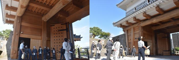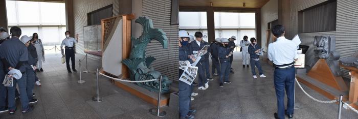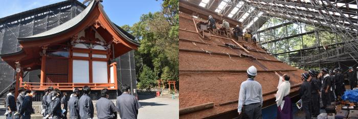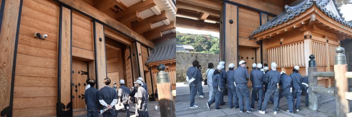 さて,10月29日(金曜日),職業指導の一環として、また、観光業への一助になればと、県内外の見学ツアーを実施しました。建築工学科2年生は「鹿児島神宮本殿屋根改修工事現場」と「鶴丸城御楼門」を,室内造形科2年生は,宮崎県の事業所や修了生の工房をそれぞれ見学しました。いずれも高い技術力と豊富な実績のある事業所で,訓練生はこれから携わるものづくりの現場の雰囲気を肌で感じながら,真剣な表情で見入っていました。訓練生にとっても久しぶりのバスの旅だったようで、楽しく有意義な一日となったようです。お忙しい中,対応していただきありがとうございました。