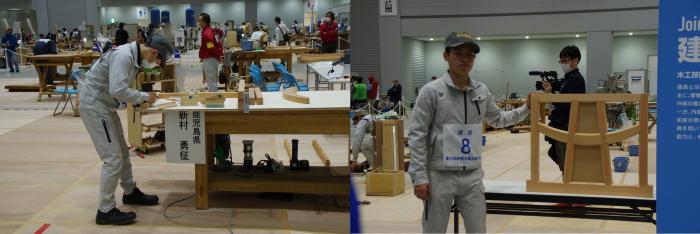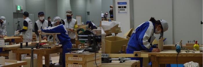 次世代のものづくりを担う青年技能者が「技」の日本一を競い合う「第59回技能五輪全国大会」が東京都で開催されました。無観客での開催となった今大会には,42職種の競技に1,028名の選手が参加し,熱戦が繰り広げられました。本校からは,建築大工職種と家具職種にそれぞれ訓練生2名が,建具職種に修了生1名が鹿児島県代表として出場しました。また,家具職種の宮崎県代表として修了生1名が出場しました。訓練生は競技課題が公表されて以降,県代表としての自覚と誇りを持って,互いに練習に励んできました。残念ながら,入賞は逃しましたが,県代表として大いに健闘してくれました。今回の経験を糧に,さらに飛躍してくれると期待しています。応援していただいた皆様,ありがとうございました!