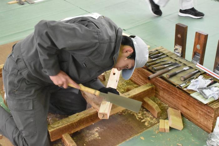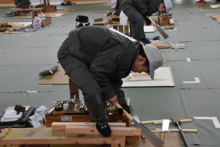 2月9日(水曜日)、本校において技能五輪鹿児島県大会(建築大工)及び後期技能検定(建築大工3級・家具3級)が実施され、熱戦が繰り広げられました。県大会で優秀な成績を上げると、11月に千葉県で開催される第60回技能五輪全国大会に県代表選手として推薦されます。また、一定水準以上の成績を収めた人には技能証が交付され、2級技能士を受験する際に実技試験が免除されます。