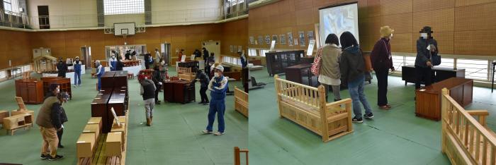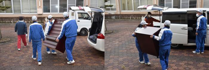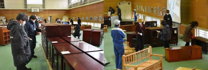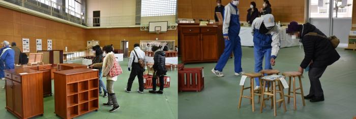 1月20日と21日に,2日間限りの家具展示即売会を開催しました。今年も昨年同様,スタッフや来場者にマスクの着用,手指の消毒,検温,ソーシャルディスタンスの確保など,感染防止対策のご協力をいただきながらの販売となりました。初日は,お目当ての家具を購入するため,朝早くから行列ができ,会場に並んだ家具は瞬く間に売れていきました。購入された方も作品の出来映えに感心した様子で、訓練生も誇らしげに家具を搬出していました。また,当日は南日本新聞社の取材もあり,慌ただしい一日となりました。お買い上げいただいた皆さまありがとうございました。
