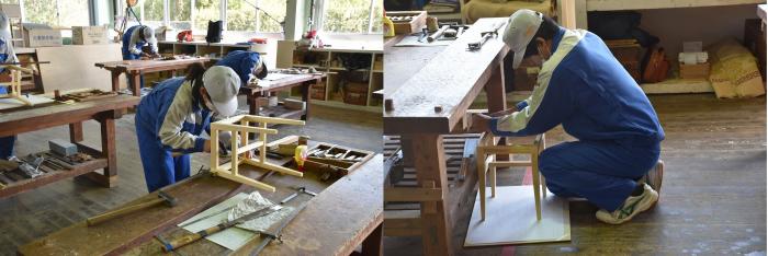 また、1年生は来年度の展示即売で販売する家具を製作中です!新製品に、乞うご期待(^_-)-☆