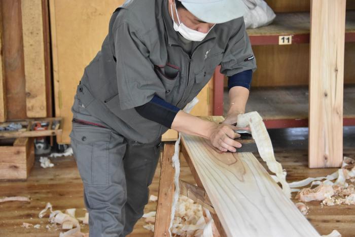 後日、鉋を使いこなせるようになるのを待っていたかのように、金物のまち「播州三木(兵庫県三木市)」の鍛冶屋から鉋が届きました。自費で購入した鉋を手にした1年生は、大工になる決意を新たにしていました!