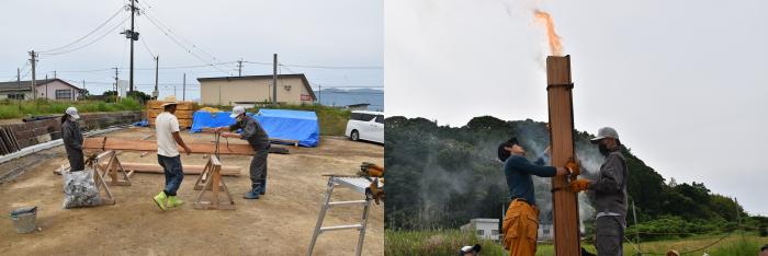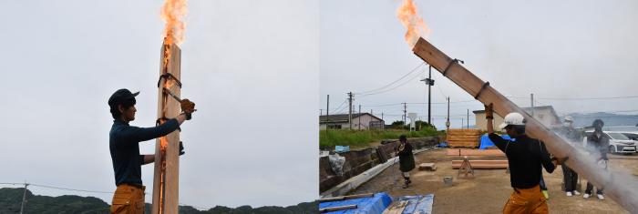 にわかに注目を集めている外壁材「焼杉(やきすぎ)」。霧島市で注文住宅を建てる工務店が新社屋建設のため、煙突効果を利用した伝統的な「三角焼き」で焼杉材を製作しています。焼杉隊の一員に任命されているのは4月に入社したばかりの榮真之介くんと藤田翔汰朗くん。2400枚のノルマを果たすため、小浜海岸付近で日々奮闘中です!