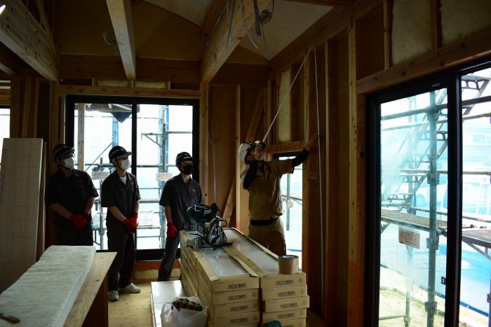 13日の参院本会議で新築住宅の省エネ義務化を柱とする改正法が全会一致により可決、成立しました。改正法では、断熱材を厚くしたり、効率的な冷暖房、照明を採用したりすることが必要になります。また、太陽光発電でエネルギー消費の一部を相殺することもできます。2025年度まで3年の準備期間はありますが、中小零細工務店にとっては、手続き上の負担や技術的な課題も懸念されます。今後、さらに厳しくなる省エネ基準に対応するため、省エネ施工の訓練も必要となりそうです・・・というわけで、建築工学科2年生は施工現場の見学を兼ねて就職希望先にお邪魔してきました!