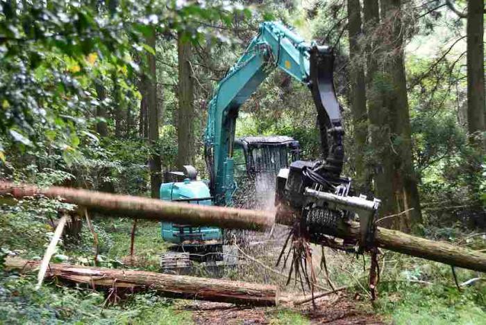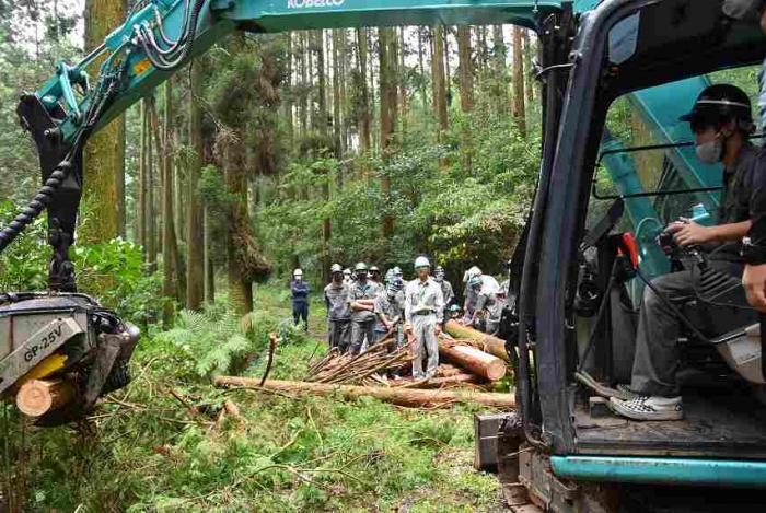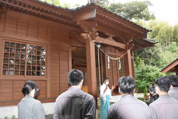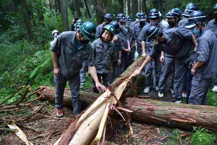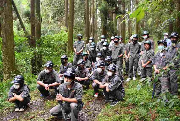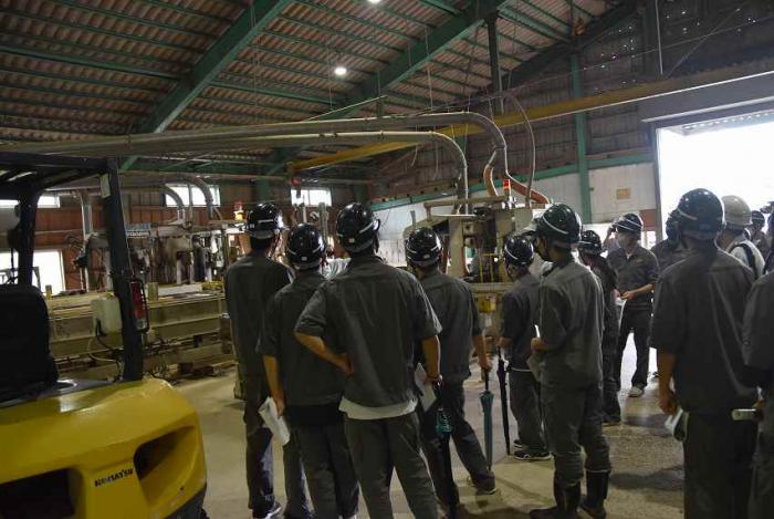 秋の行楽シーズンを迎えた9月22日(木曜日)、恒例の事業所見学を実施しました。建築工学科は鹿児島県木造住宅推進協議会のご厚意で、「木造住宅建築現場等の見学会」に参加し、北薩地域管内の伐採現場、プレカット工場、建築現場、住宅展示場を見学。最後は、歴代の先輩たちが手掛けた諏訪神社を参拝しました。また、室内造形科は鹿児島県工業技術センターや大手企業7社が出資して設立した総合木材会社の巨大工場(湧水町)を見学しました。