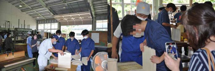 7月1日(金曜日)に恒例の開校記念行事「鉋(かんな)薄削り大会」を開催しました。この日に向けて連日特訓してきた訓練生は、ヒノキ材の表面を極限まで薄く削るミクロン単位の熱き戦いを繰り広げました。当日は気温も高く、競技会場は熱気に包まれ、訓練生はコロナ感染予防に加え、熱中症対策を講じながらの競技となりました。