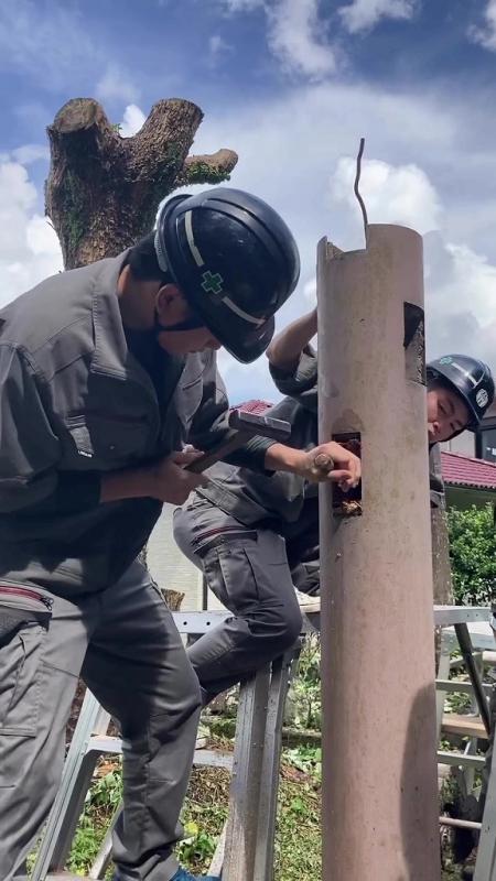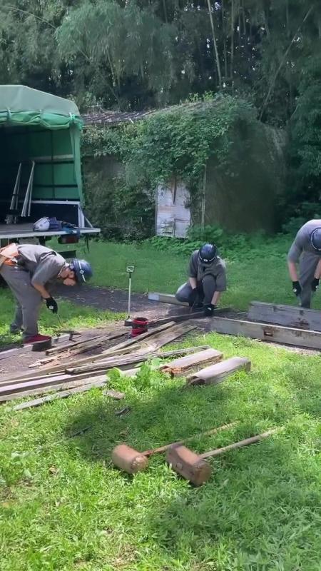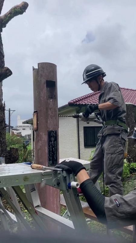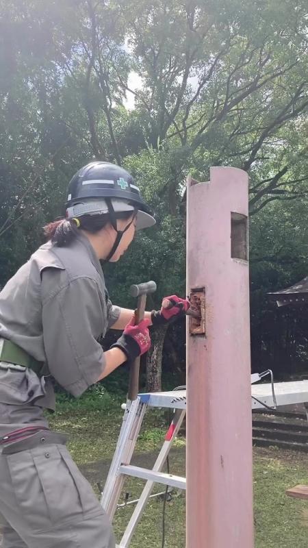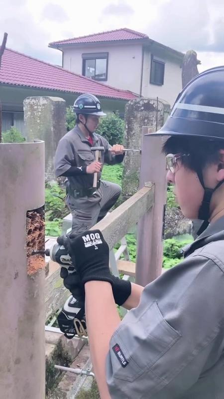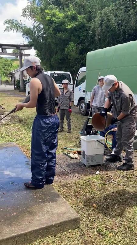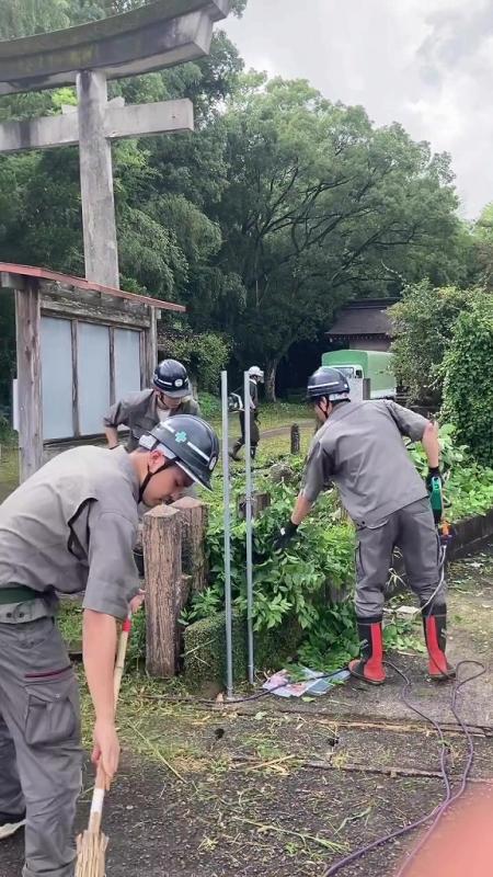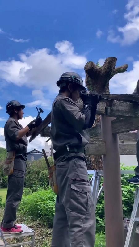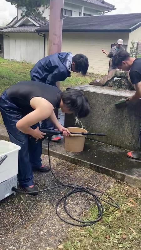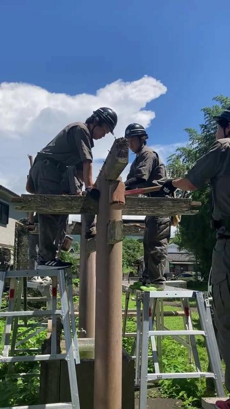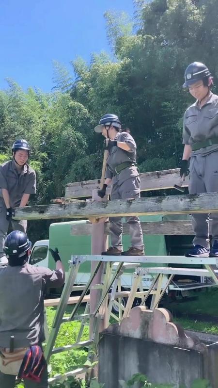 この度、境内の老朽化した「手水舎」を建築工学科2年生が改築することになりました。先日、六月燈を前に解体工事を無事に終えました。電気・水道が停止中の現場のため、発電機やローリータンクを使用しながらの解体作業となりましたが、連日の猛暑の中で訓練生は一生懸命取り組んでいました!