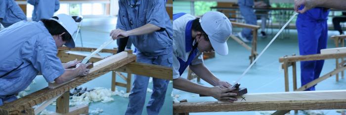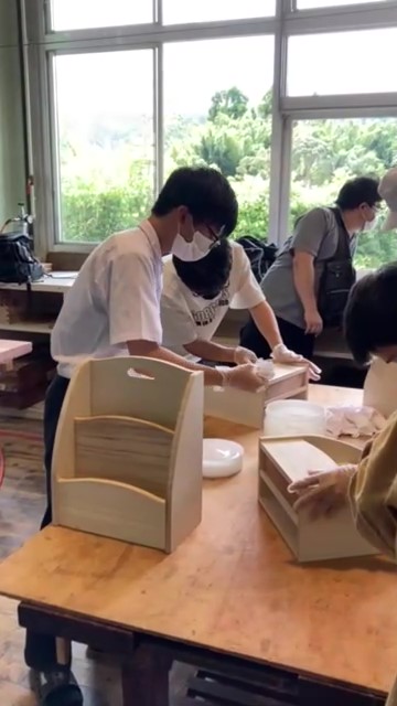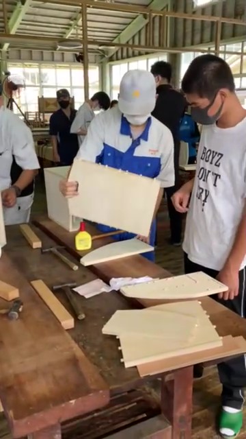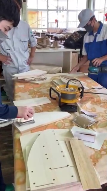 若者にものづくりの魅力を感じてもらうため、室内造形科では木工機械を実際に操作し、材料の加工から組立、塗装まで、家具製作の一連の流れを体験し、「マガジンラック」を製作していただきました。建築工学科ではプロ仕様の電動工具や治具を使い「ブルーリッジ風チェア」を製作していただきました。熱中症に注意を呼びかけながらの体験となりましたが、参加された皆さんは、暑さや時間を忘れて、ものづくりに没頭していました。わずか3時間で2作品を完成させた参加者の表情は達成感に満ち溢れ、満足げに作品を持ち帰る姿が印象的でした。猛暑の中、参加された皆さん、お疲れさまでした!