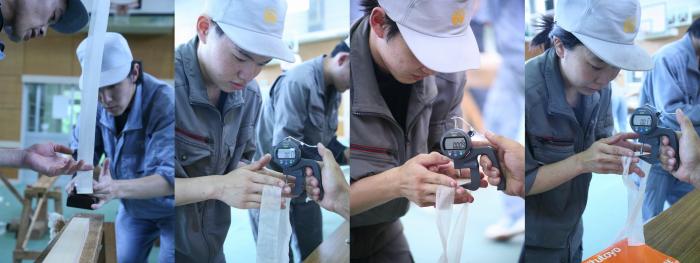 さて、団体予選で同学年対決を制した4チームによる決勝戦では、先輩が経験の差を見せつけ、建築工学科2年生Bチームが優勝。午後から行われた個人戦では日頃の訓練の成果を発揮しようと各自が薄さの限界に挑み、会場全体が熱気に包まれました。記録や順位が目まぐるしく入れ替わる中、建築工学科2年生がミクロン対決を制しました。初めての大会となった1年生も、団体決勝や個人戦上位に名を連ねるなど大いに健闘しました。来年はさらにハイレベルな戦いを期待しています。