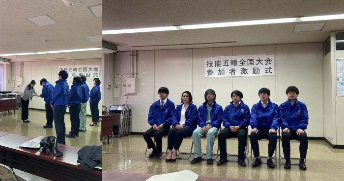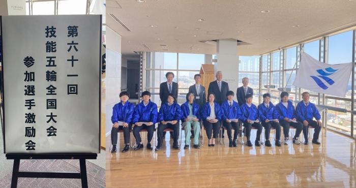 第61回技能五輪全国大会に出場する鹿児島県代表選手の激励会が「かごゆいテラス」(県庁18階)で行われました。全国大会は11月17日から21日まで愛知県で開催され、23歳以下の青年技能者が41職種で技能日本一を競います。本県からは4職種(左官、家具、建具、建築大工)に9名が出場します。式では、選手団が紹介された後、県商工労働水産部次長から激励の言葉をいただき、県や各団体から選手に激励金が授与されました。最後に、選手代表が大会への決意を述べ、記念撮影となりました。また、同日、鹿児島市の激励会も開催され、同市に生活拠点のある選手に激励金が授与されました。
