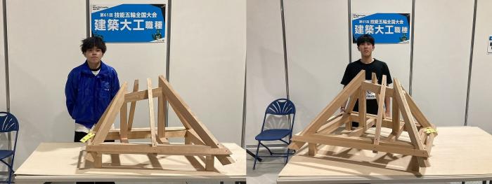 県代表として本校から岡﨑龍生(奄美市)、田中稜(姶良市)が家具職種に、西蛍太(鹿児島市)、森田洋介(鹿児島市)が建築大工部門に出場します。また、修了生の福留紫音さんが建具部門、福永涼介さんが家具部門、岩本陽晴さん、寺園玲音さんが建築大工部門に出場します。今大会に出場する本校の関係者は総勢8名!大会での活躍を期待しています!!