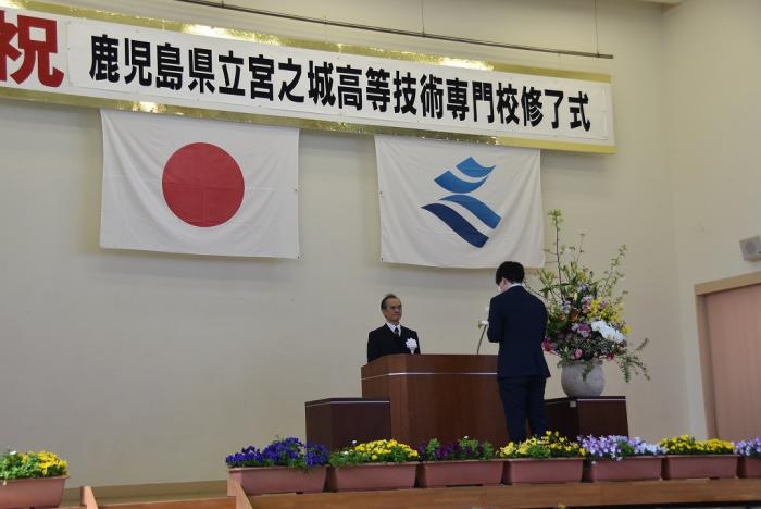 式では、知事賞や校長賞、優秀技能賞などの表彰が行われました。永田校長の式辞では、「夢や大切なものを、これからもずっと守ってゆけるように、そしていつか、夢をその手に掴むために、ここで過ごした2年間の自信と誇りを持って、自分らしく、それぞれの目指す道を進んでいってほしい」と激励の言葉がありました。