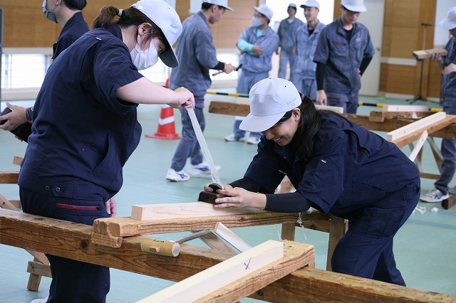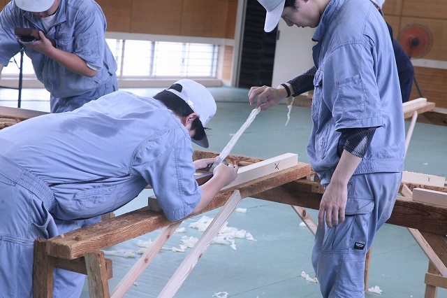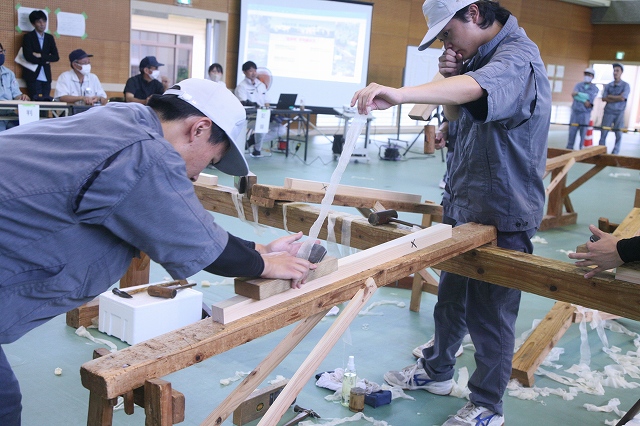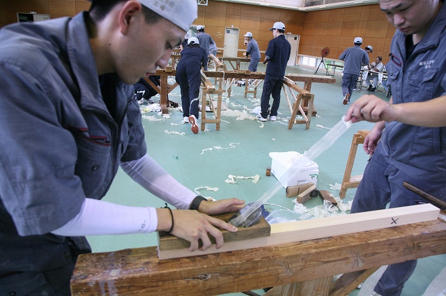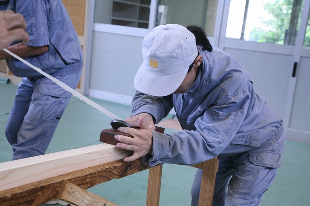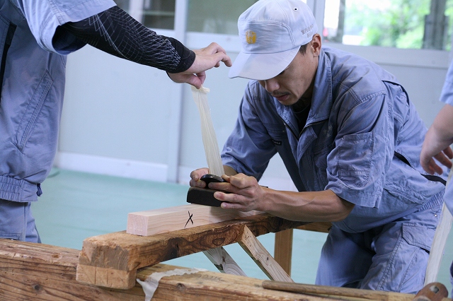 6月28日(金曜日)に恒例の開校記念行事「鉋(かんな)薄削り大会」を開催しました。この日に向けて連日特訓してきた訓練生は、ヒノキ材の表面を極限まで薄く削るミクロン単位の熱き戦いを繰り広げました。