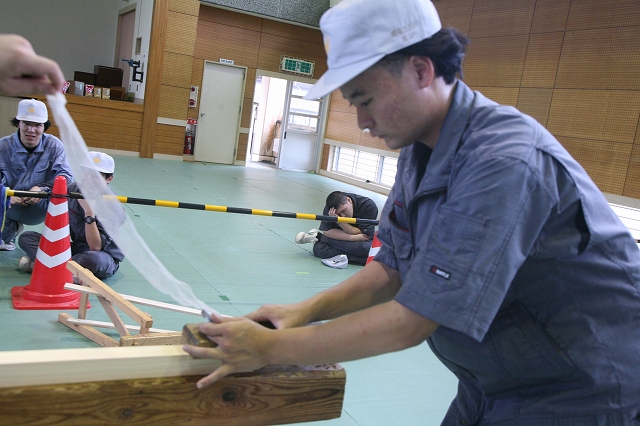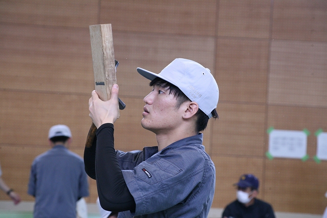 当日は、午前中に団体戦の予選、午後から団体戦決勝と個人戦が行われました。削る材料は予算と技量の都合で、「削ろう会」公式ルールの半分の長さとし、地元のヒノキ材を使用しました。