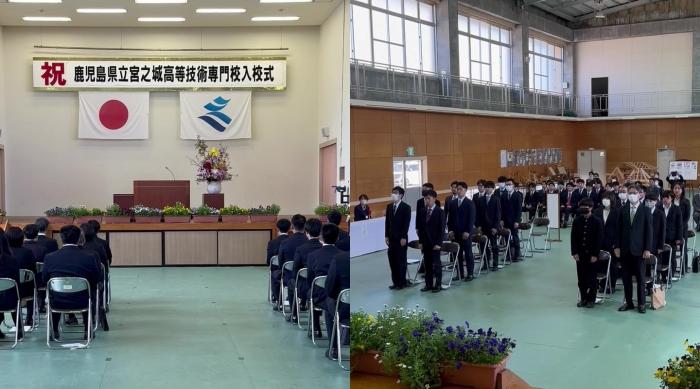 4月9日、本校講堂において入校式が挙行されました。式では坂口校長が「これまで先人達が、熱い思いで受け継いできた校訓(礼儀・錬磨・創造)を心に刻んでいただきたい。本校での頑張りは、皆さんのこれからを大きく変える力を持っていると信じています。途中であきらめず、目標に向かって最後まで頑張り通してください」と激励。また、「時代の変化に的確に対応しながら、職業人生の長期化も見据え、主体的に能力の向上やキャリアの形成に取り組むことのできる、立派な技能者として成長されることを期待しております」と下畝雇用労政課長から知事あいさつを賜りました。さらに、入校生を代表して建築工学科松元完樹さん(鹿児島実業高校出身)が「今日の感激と決意を忘れることなく、お互いに励ましあって、新しい技能の習得に努め、皆様のご期待に添えるよう精一杯努力することを誓います」と力強く述べました。