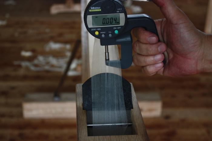 今週末、開校記念行事として毎年恒例の鉋薄削り大会が行われます。材料は予算と技量の都合で、削ろう会公式ルールの半分の長さで競技します。午前中の団体戦は、制限時間内のチームの平均記録で競います。午後からの個人戦では各自が薄さの極限に挑みます。訓練生は、大会に向けて刃研ぎや鉋の調整に余念がありません。鉋と真摯に向き合い、没頭し、自分の限界に挑みます。