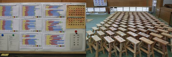 小学生8名は、訓練生の手ほどきを受けながら『かごしま県産材を使った休息イス』を製作しました。初めて使う電動工具や治具も、終わる頃には上手に使いこなしていました。背もたれには個性あふれる絵が入っており、素敵ないすが完成しました。交流を図りながら一緒に作り上げた作品に、子ども達や訓練生も喜びと達成感を味わえたのではないでしょうか。