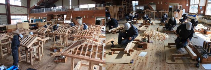 2年生は「基礎小屋模型」が完成しました。また、修了を間近に控え、技能水準を測るための技能照査が実施されました。合格した者には技能士補が与えられます。