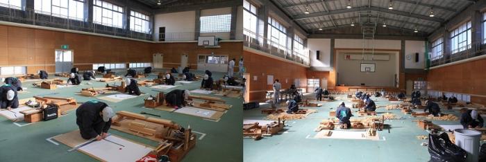 1年生は県大会に向けて年明けから特訓を重ねてきました。全国大会での上位入賞を目指し、クラスの底上げを図るため、例年以上の練習量を課しました。当日は、工務店の大工さんを含め、出場資格のある23以下の選手17名が技を競いました。合格発表は3月13日、推薦者決定は5月中旬の予定です。