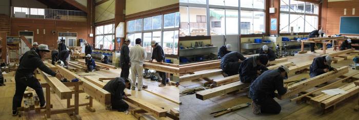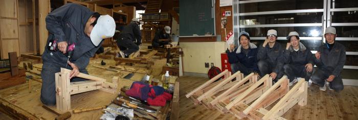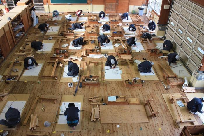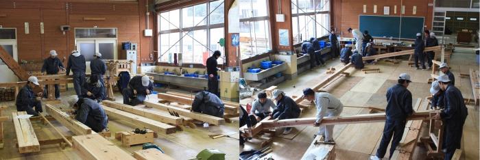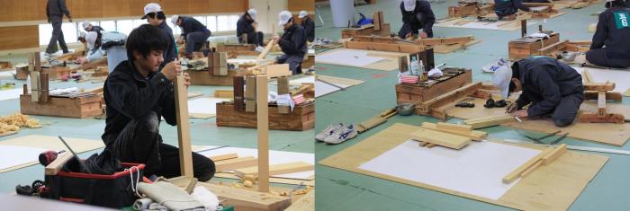 また、小屋模型の土台部分を完成させた1年生は、いよいよ技能五輪県予選に向けて特訓を開始しました。1年生にとって、ここが正念場です。毎年この特訓で技能水準が飛躍的に向上します。今年は、修了生を含めた23名が全国大会の切符をかけて県予選に挑みます。県代表の座は誰の手に!