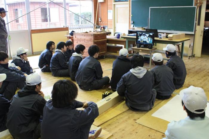 当日は採用担当者による企業説明のみならず、現役の棟梁5名による貴重な講話やディスカッションが行われました。訓練生はいつになく真剣な眼差しで棟梁たちの話しに聞き入り、家づくりの魅力や大工としての心構えを学びました。お忙しい中、貴重な時間を割いていただきありがとうございました。