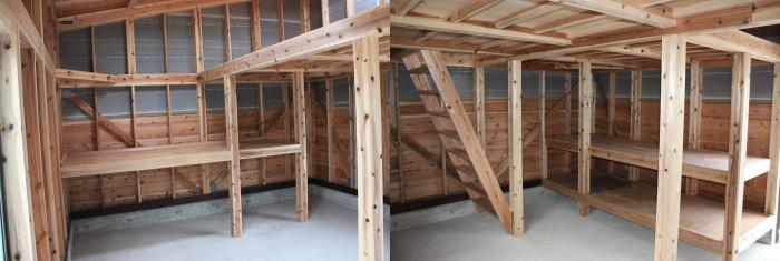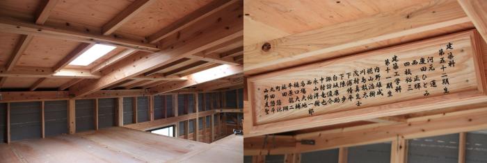 一方、体育倉庫の建て替えに着手した2年生は、小屋組の仮組を終えました。今回の体育倉庫は屋根裏を利用した開放的な収納スペースを設けるため、登り梁を採用しています。ロフトやグルニエ(屋根裏部屋)は、建築基準法において「小屋裏物置等」という扱いになり、天井高が1.4m以下で直下の階の2分の1の面積であれば、階数にもカウントされず、床面積にも算入しなくてよいため、近年人気の間取りです。