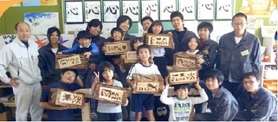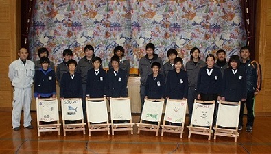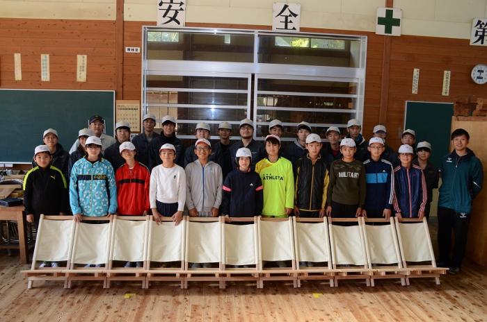 中津川小学校5、6年生と鹿児島県産材を使った休息いすを製作しました。 |