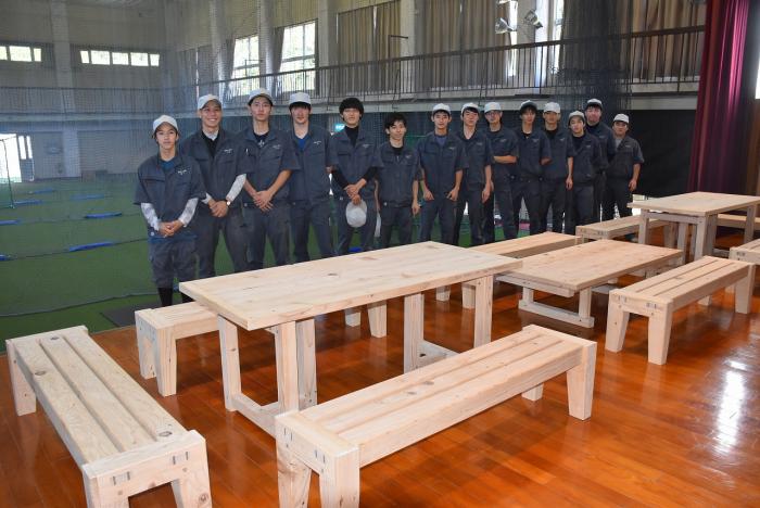 SDGsの一環として、閉校した小学校体育館の廃材でベンチとテーブルを製作し,施設に寄贈しました。 《Facebookアルバム》 |