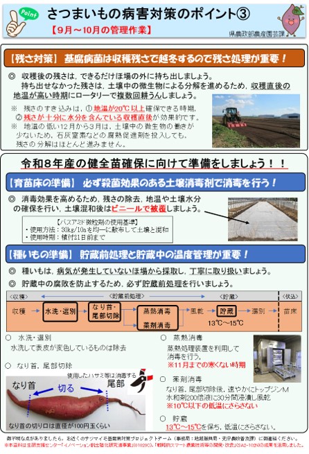 ホーム > 産業・労働 > 食・農業 > サツマイモ基腐病対策に関する情報 > サツマイモ基腐病対策のポイント(時期別対策)