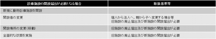 動物診療施設を開設した場合,その開設の日から10日以内に,届出が必要となります。当該診療施設を休止し,若しくは廃止し,又は届け出た事項を変更した場合も,同様です。いずれも届出費用は無料です。