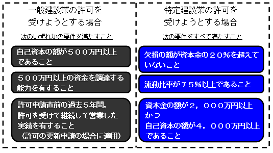 - 建設業の許可を受けるためには,建設業法第7条に規定する「許可要件」を備えていること及び同法8条に規定する「欠格要件」に該当しないことが必要です。