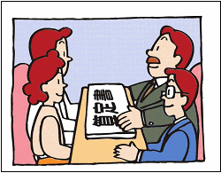 補償の内容をご了解いただきますと書面で契約させていただきます。契約書は私どもが作成し,その内容についてもご説明いたします。