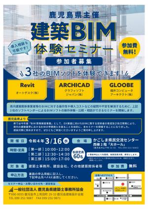 県では今年度「BIM啓発推進事業」として,DX推進に向けたBIMに関する技術者の育成及び自己啓発により,県内の建築業界におけるBIMの早期導入を図ることを目的に,本セミナーを開催します。感染対策に努めますので,ぜひともご参加ください。