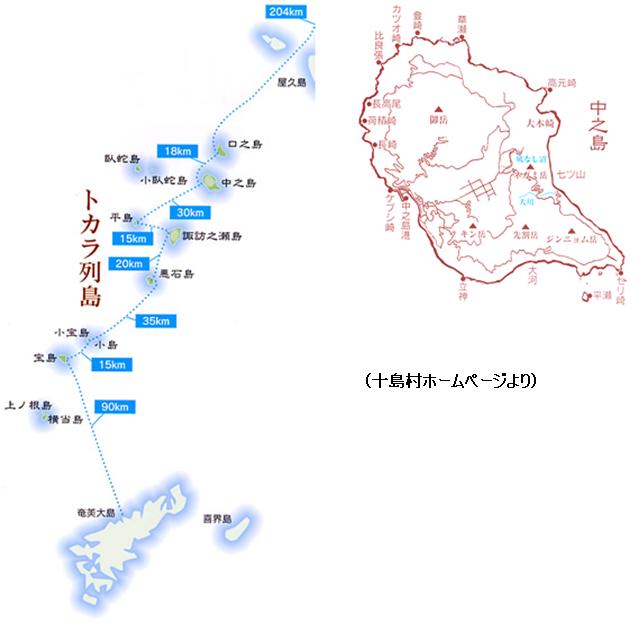 十島村は屋久島と奄美大島の間に位置し,南北160キロメートルにおよぶトカラ列島に有人7島,無人5島の12の島々で構成されます。