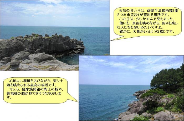 更に,見晴らしはというと,視野をさえぎる物もなく,吹上浜や薩摩半島最西端(南さつま市笠沙),それに東シナ海も一望できる絶景の場所です。