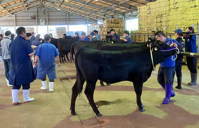 9月16日,出水中央家畜市場で出水地区畜産共進会が開催されました。若雌1~3部と成雌区に合計33頭の出品があり,各部で関係者による審査が行われ,10月4日に姶良中央家畜市場で開催される県畜産共進会への出品牛2頭が決定しました。全体的に発育良好で体積があり,体の伸びの良い雌牛が多く出品されていました。しかし,体高が月齢に対する基準上限を超える牛が多く,体高に対する体の深みや幅が足りない牛や足元の弱い牛も見られました。今後も関係機関・団体一体となり,優良雌牛を保留し,商品性の高い子牛生産につなげられるよう取り組みます。