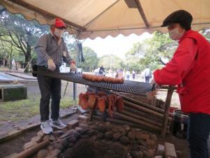 折り紙遊びやアウトドア料理をしてふれあいます。