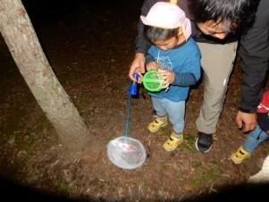 携行品:懐中電灯,虫かご・虫捕り網,虫の餌,手袋(軍手),大きめのビニール袋,キャンプ道具・食材等