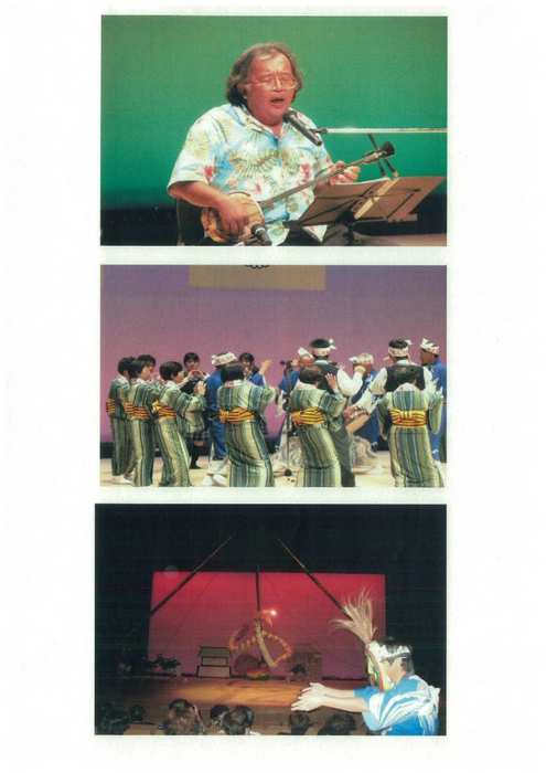 島唄(曲目:「昔(むかし)イキントウ」,「道(みち)イキントウ」,「下(さぁー)ギイキントウ」)