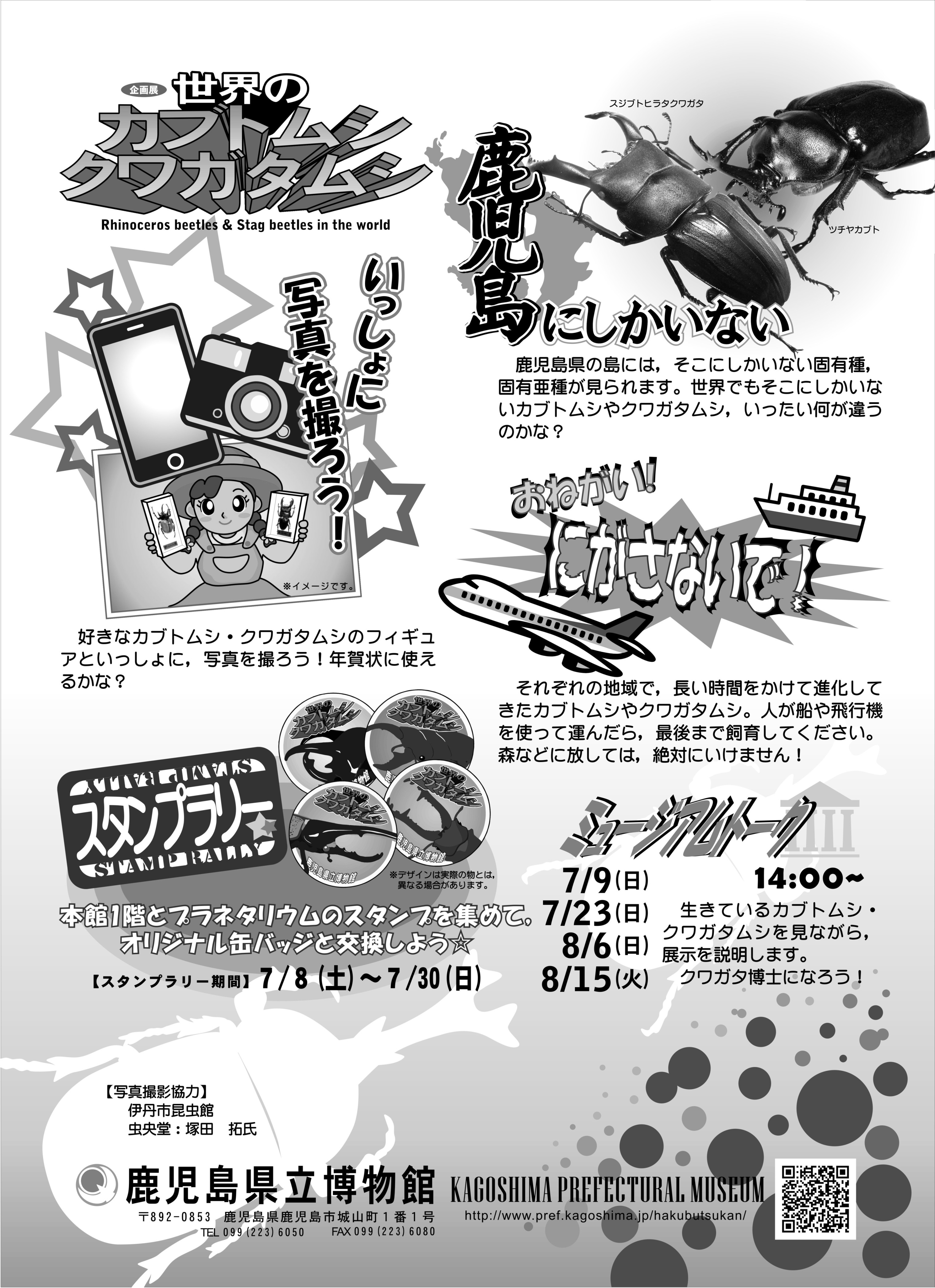 大きくてかっこいいカブトムシ・クワガタムシは,夏休みの主役の一つでしょう。世界のカブトムシ・クワガタムシを紹介すると共に,鹿児島にすむさまざまなクワガタムシの秘密なども紹介します。