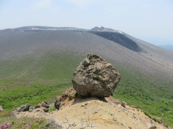おにぎり岩と新燃岳 |