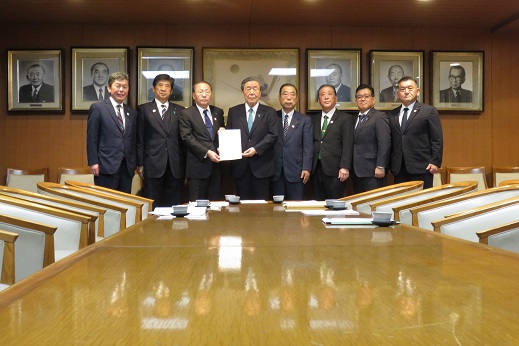 自由民主党森山幹事長(左から4番目)への要請(右から4番目が松里議長)