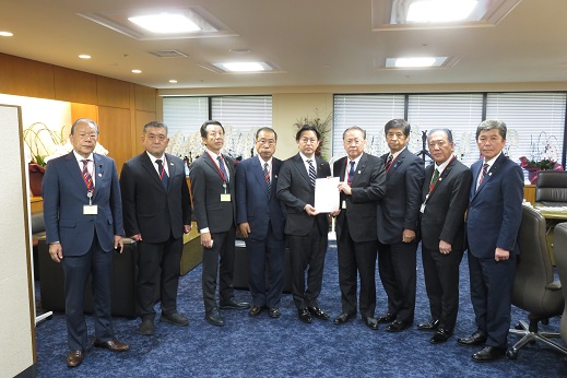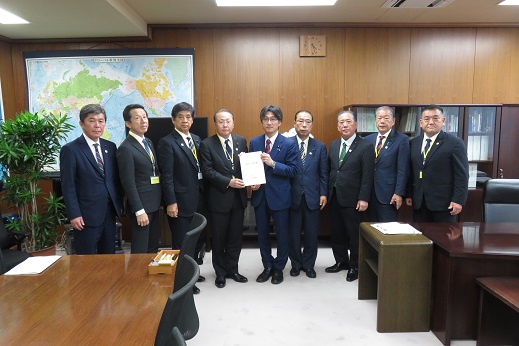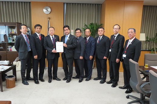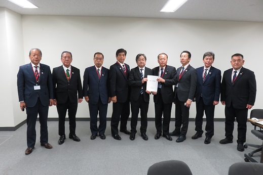 坂井内閣府特命担当大臣(左から4番目)への要請(右から4番目が松里議長)