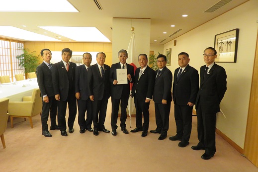岩屋外務大臣(中央)への要請(左から3番目が松里議長)