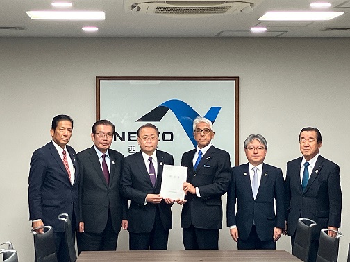 西日本高速道路株式会社小笹取締役常務執行役員建設事業本部長(右から3番目)への要請(右端が永井副議長)