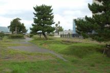 現在は地中に埋まって(うまって)いる部分もありますが、大砲(たいほう)の台座(だいざ)の跡(あと)を見ることができます。