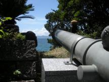 南大隅(みなみおおすみ)町の根占にある砲台跡(ほうだいあと)で、文久2(1863)年に海からの攻撃(こうげき)に備えて(そなえて)作られました。現在(げんざい)は、大砲(たいほう)を据える(すえる)ように加工された、長さ約60メートルにわたる石垣が残っています。