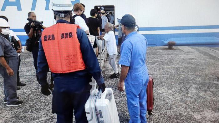 また、鹿児島港では、悪石島や小宝島からの避難住民を乗せたフェリーが到着し、鹿児島中央警察署の署員が見守り活動を行いました。