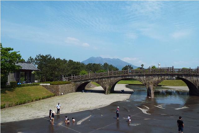 石橋記念公園は,甲突川に架かっていた五石橋のうち平成5年8月の集中豪雨による洪水で流失を免れた石橋3橋のうち西田橋を,貴重な文化遺産として後世まで確実に残すため,移設復元し,広く県民に親しまれる文化財として,末長い石橋の保存活用を図るため整備した公園です。